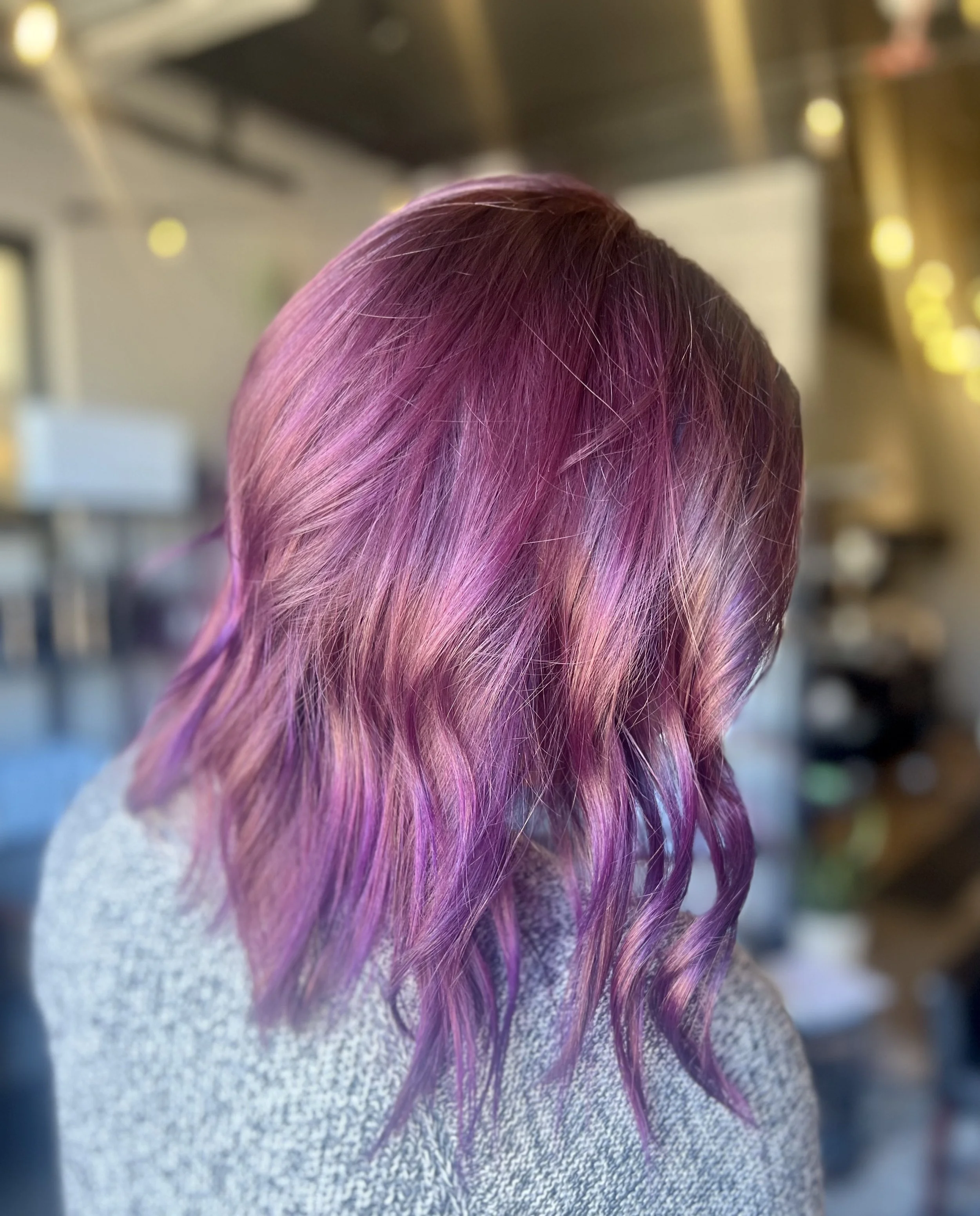 Meet Tessa, a valued client who has been a part of the Color House family since the fall of 2021. Over the years, Tessa has entrusted multiple stylists with her hair, and each time she has experienced nothing short of exceptional care and expertise. Recently, Tessa made a bold decision to transition from her signature dimensional blonde to a vibrant purple-red color, a transformation that reflects both her adventurous spirit and the skill of our talented stylists.